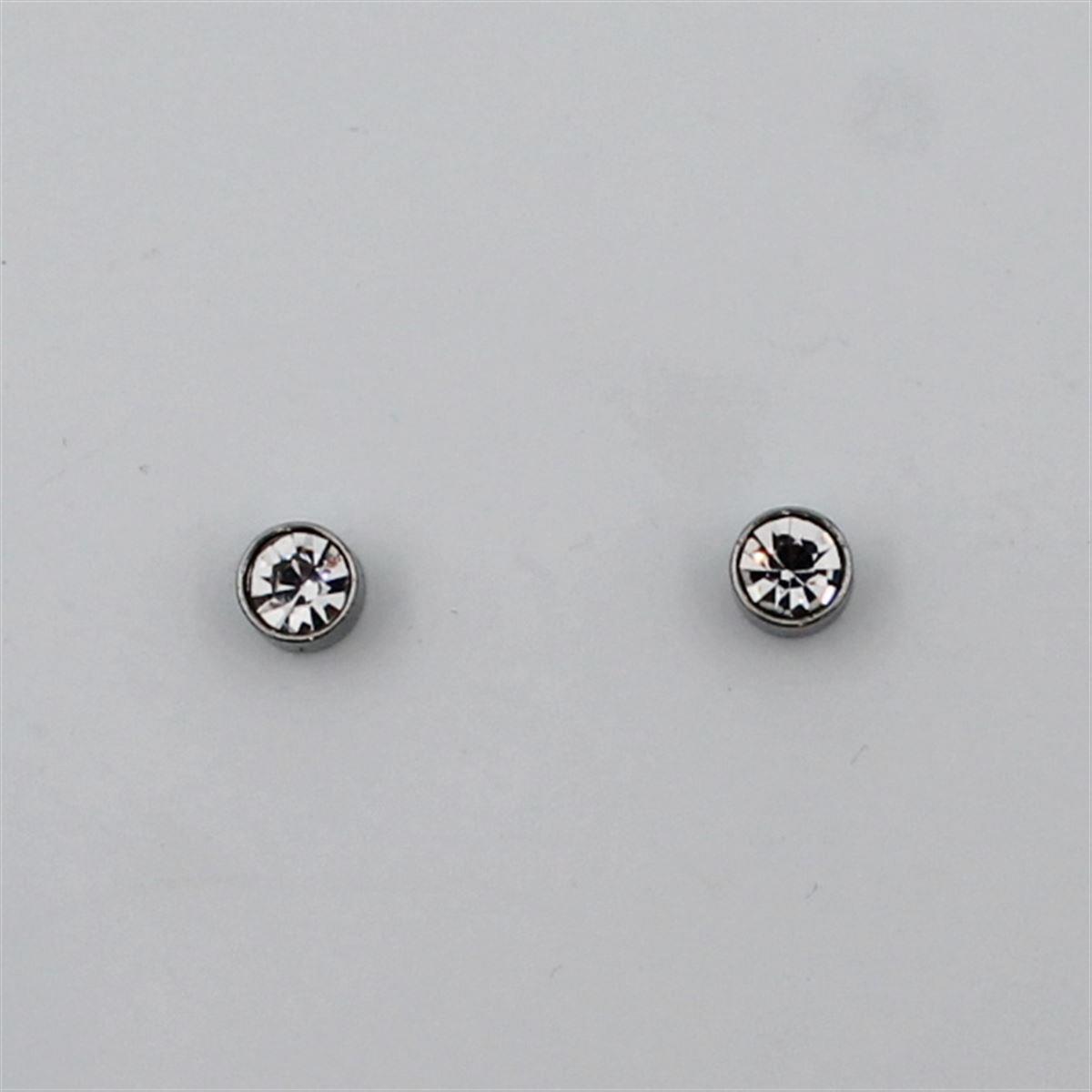 Ατσάλινα σκουλαρίκια "Στρόγγυλο με λευκή πέτρα, μαγνητικό & ανδρικό" διάμετρος 0,6εκ. 70056