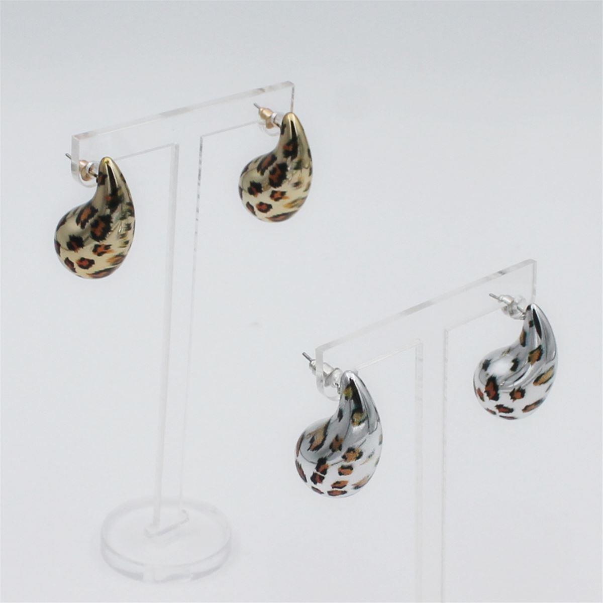 Σκουλαρίκια με ατσάλινο κούμπωμα "Σταγόνα animal print" μήκους 3εκ. 70064