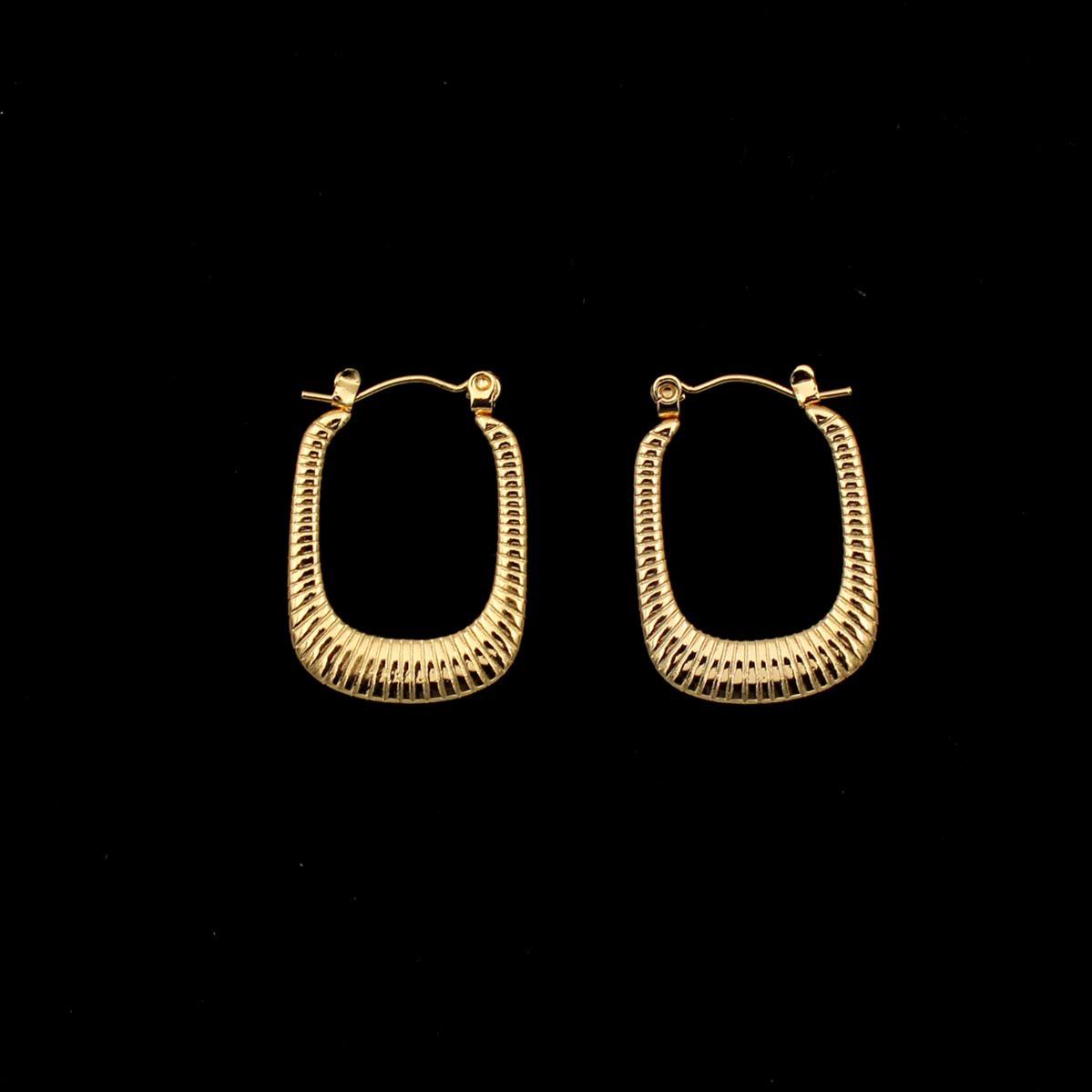 Ατσάλινα σκουλαρίκια "Κρίκος πλακέ ορθογώνιο ριγέ" μήκος 2,5εκ. 70216
