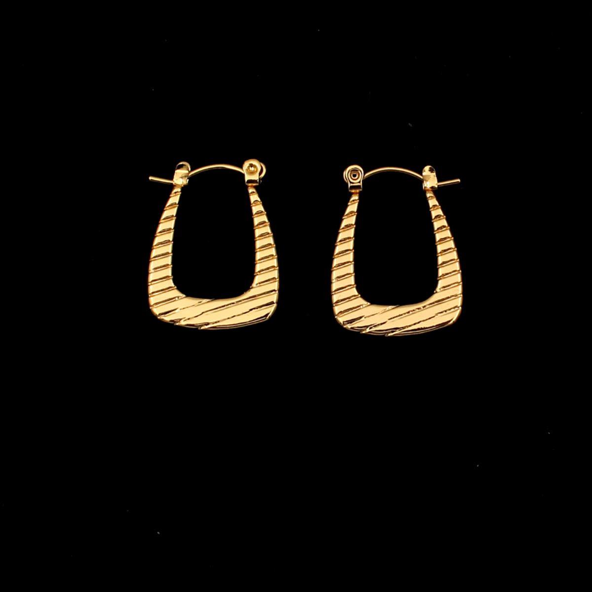 Ατσάλινα σκουλαρίκια "Κρίκος πλακέ ορθογώνιο ριγέ" μήκος 2,2εκ. 70218