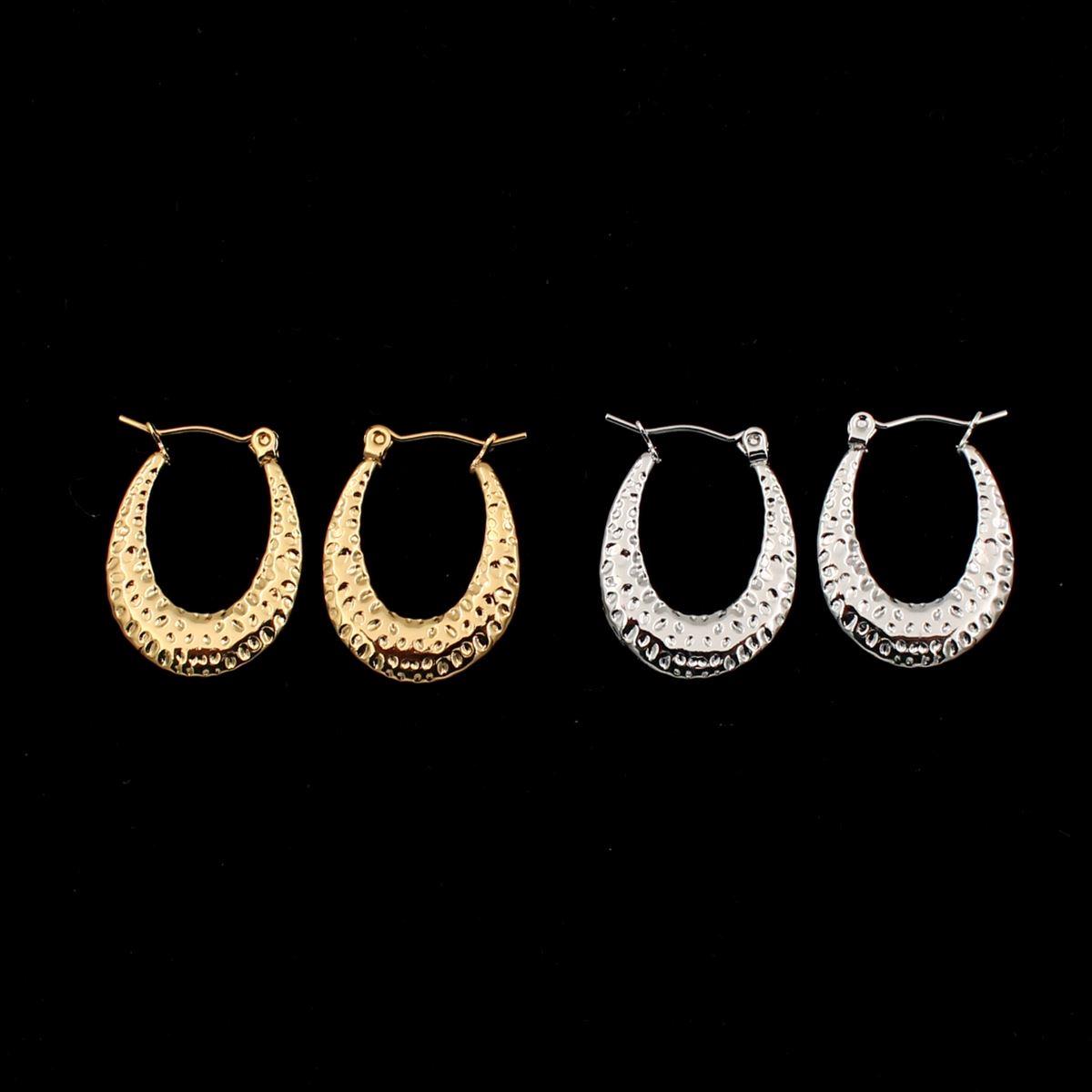 Ατσάλινα σκουλαρίκια "κρίκος πλακέ οβάλ σφυρίλατος" μήκος 2,5εκ. 70284