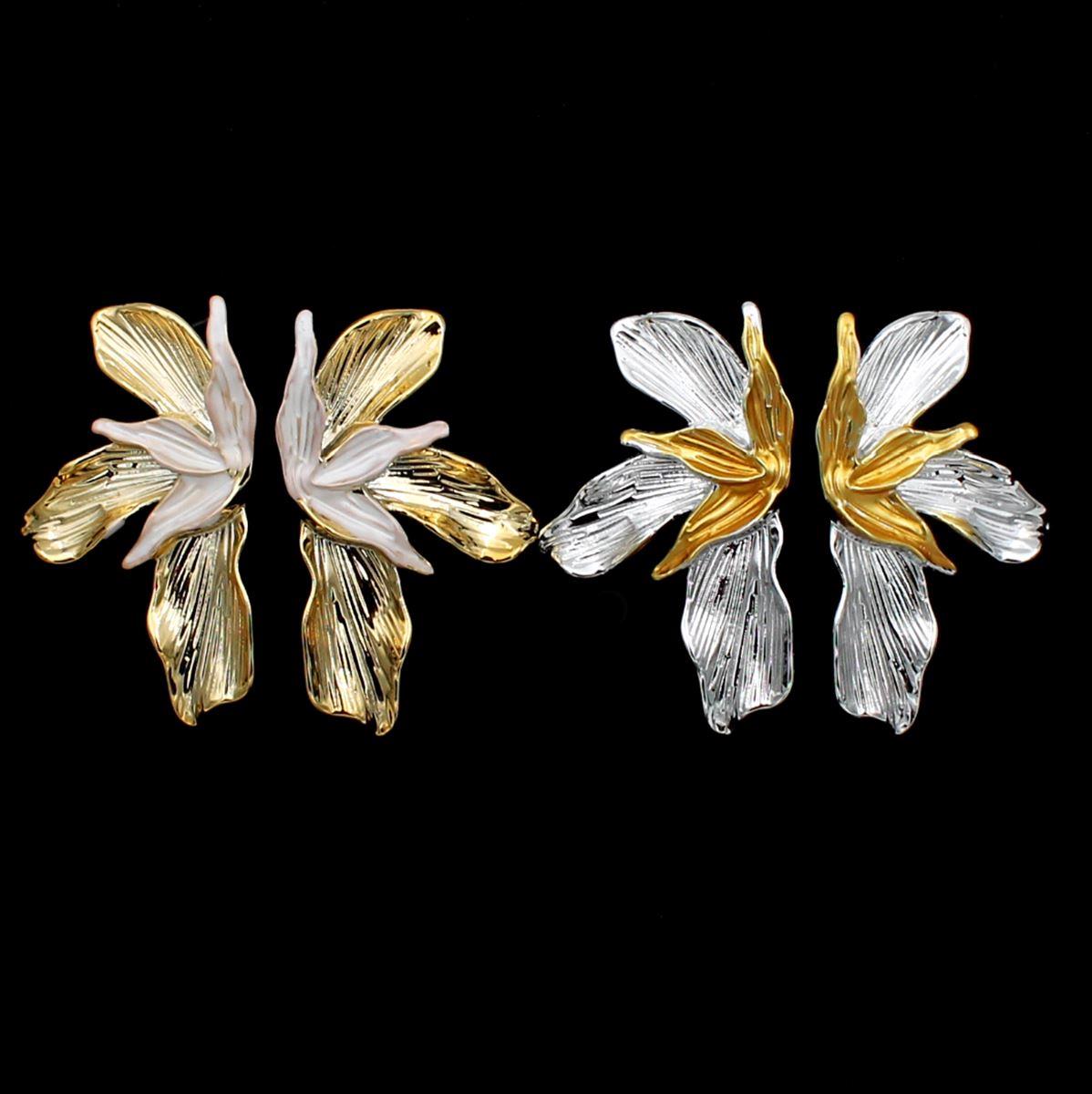 Σκουλαρίκια με ατσάλινο κούμπωμα "φύλλο δίχρωμο" μήκος 5,3εκ. 70286