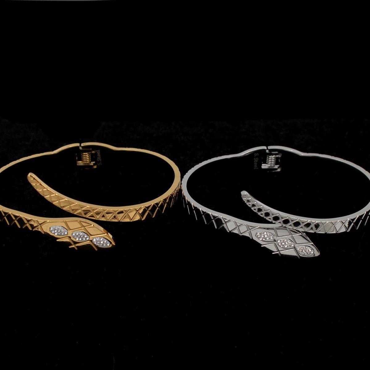 Ατσάλινη χειροπέδα "φίδι με λευκές πέτρες" διάμετρος 6,3εκ. 70306
