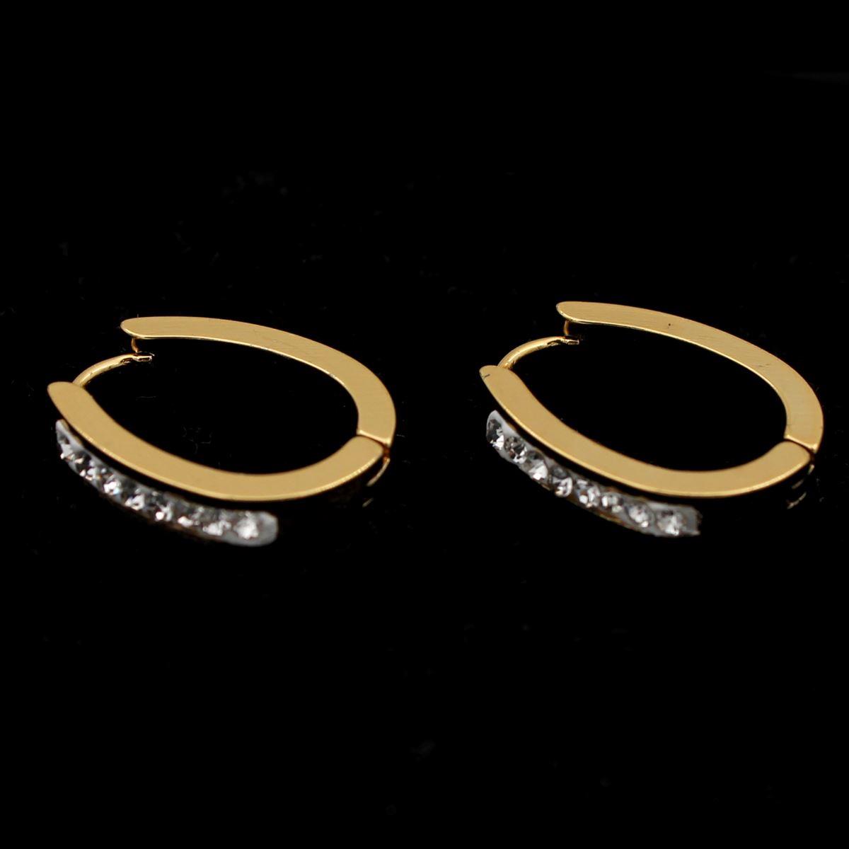 Ατσάλινα σκουλαρίκια "κρίκος οβάλ με λευκές πέτρες" πάχος 0,3εκ. μήκος 2εκ. 70314