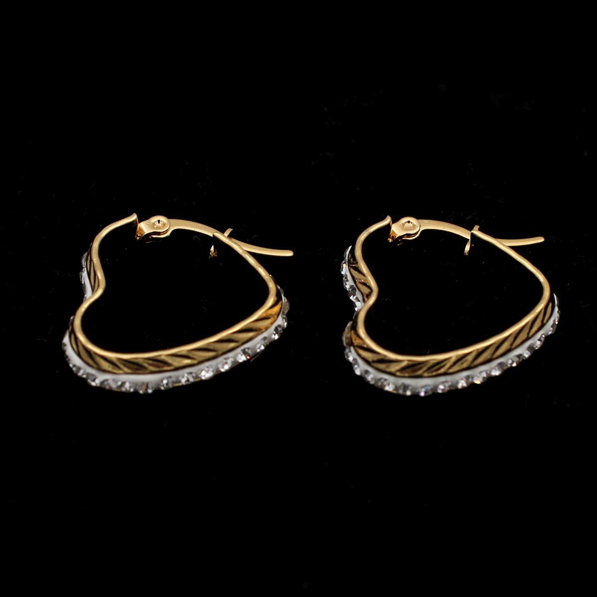 Ατσάλινα σκουλαρίκια "κρίκος καρδιά με λευκές πέτρες" πάχος 0,6εκ. μήκος 2εκ. 70316