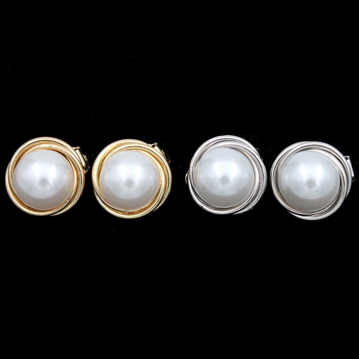 Σκουλαρίκια με κούμπωμα κλιπς "στρόγγυλη πέρλα με στεφάνι" διάμετρος 2,1εκ. 70443