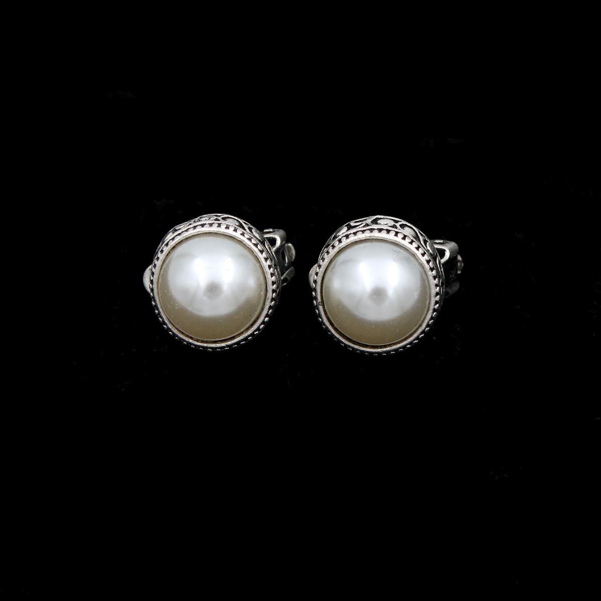 Σκουλαρίκια με κούμπωμα κλιπς "στρόγγυλη πέρλα με στεφάνι" διάμετρος 1.5εκ. 70444