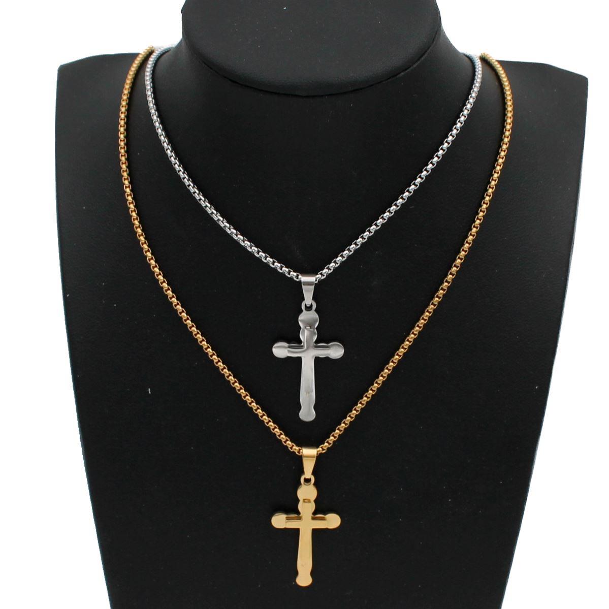 Ατσάλινο κολιέ "σταυρός με χοντρή αλυσίδα" μήκος 60εκ.+ προέκταση 70577
