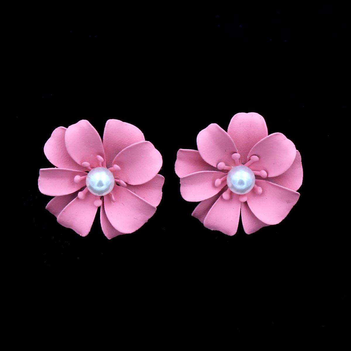 Σκουλαρίκια με ατσάλινο κούμπωμα "λουλούδι τρισδιάστατο με πέρλα" διάμετρος 2,6εκ. 70649