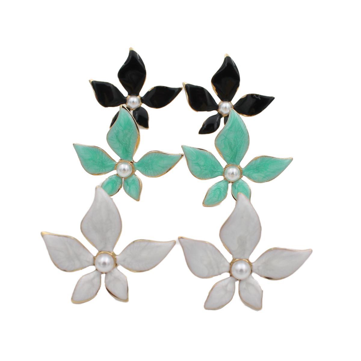 Ατσάλινα σκουλαρίκια "λουλούδι με σμάλτο" μήκος 3,1εκ. 70702