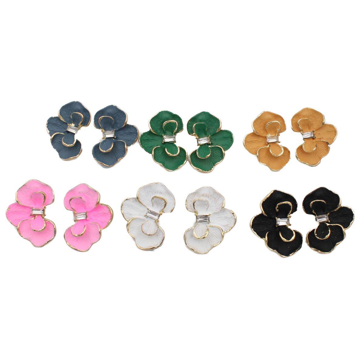 Ατσάλινα σκουλαρίκια "λουλούδι σμάλτο με πέτρα" μήκος 2εκ. 70712