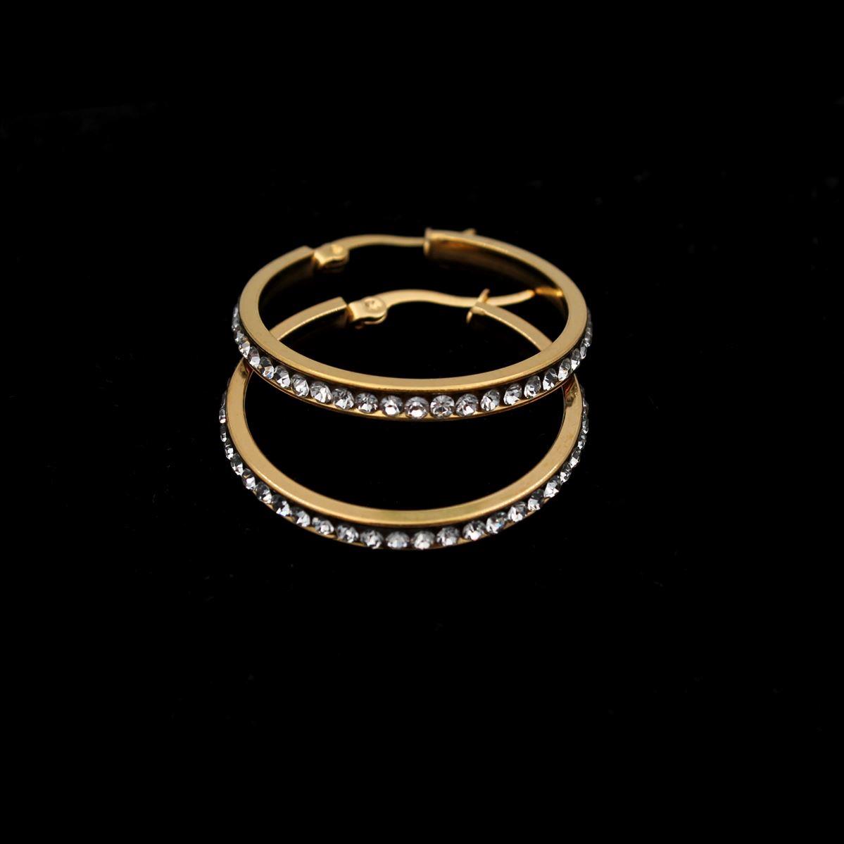Ατσάλινα σκουλαρίκια "κρίκος με λευκές πέτρες" μήκος 3εκ. 70307