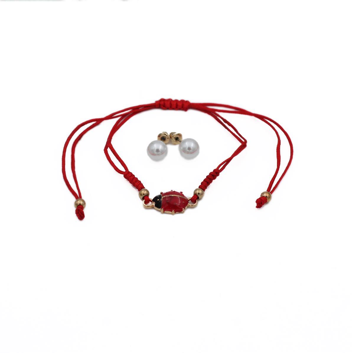 Βραχιόλι "Μάρτης με πασχαλίτσα σετ με ατσάλινα σκουλαρίκια πέρλα" one size 70329
