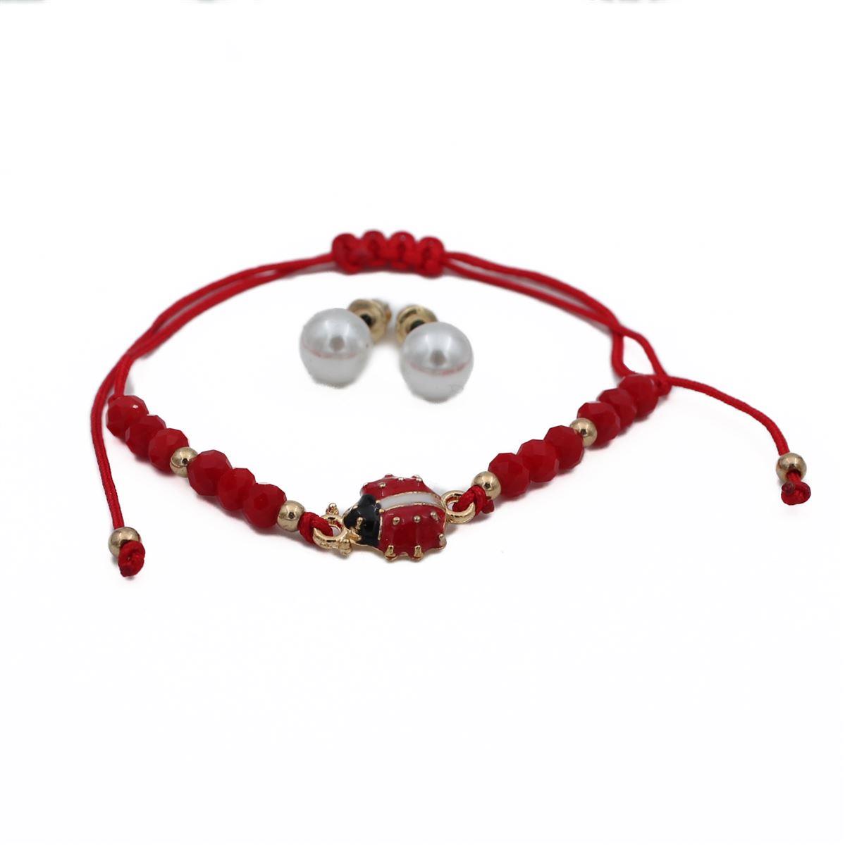 Βραχιόλι "Μάρτης με πασχαλίτσα σετ με ατσάλινα σκουλαρίκια πέρλα" one size 70332