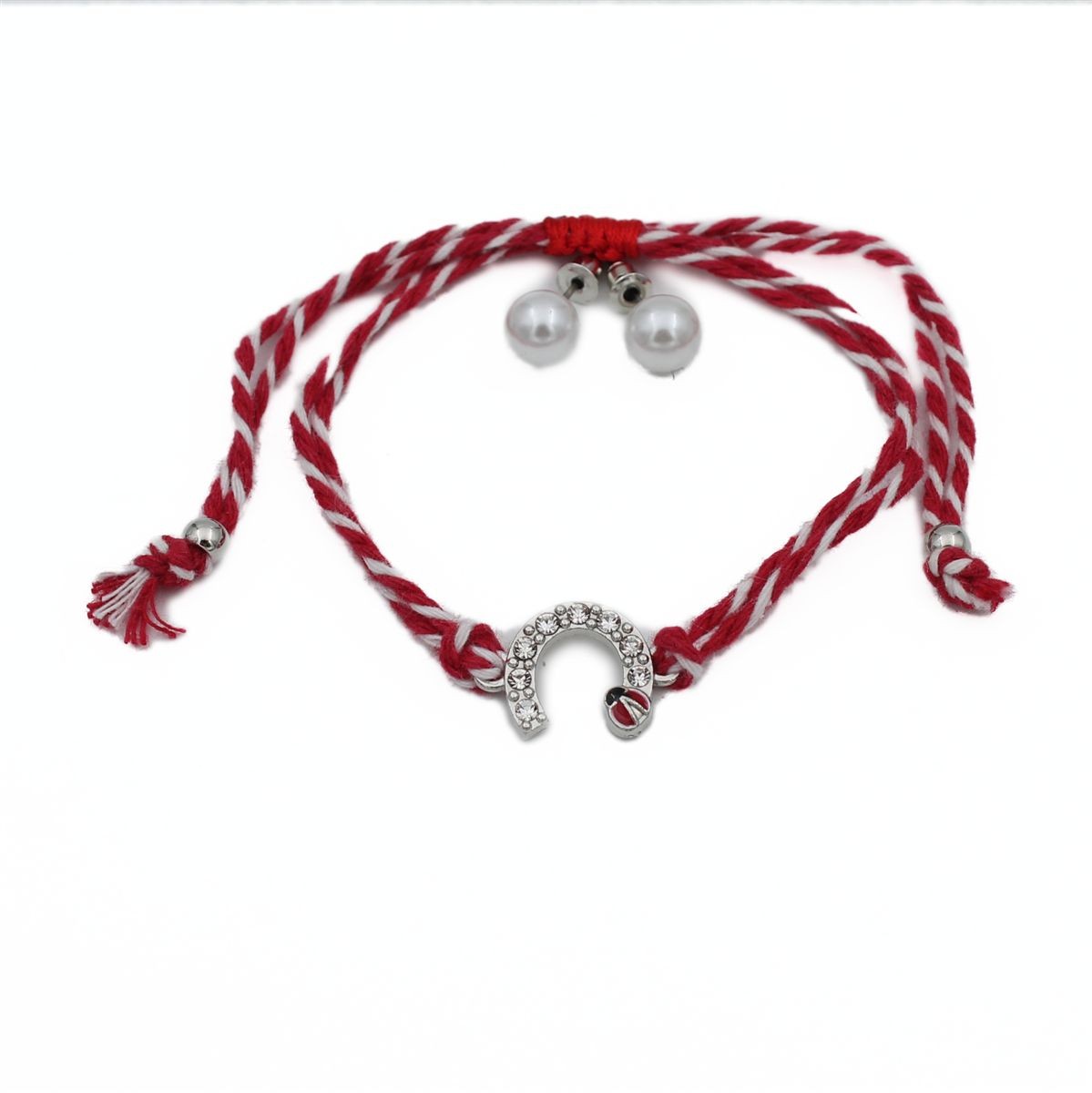 Βραχιόλι "Μάρτης πέταλο με λευκές πέτρες και πασχαλίτσα σετ με ατσάλινα σκουλαρίκια πέρλα" one size 70334