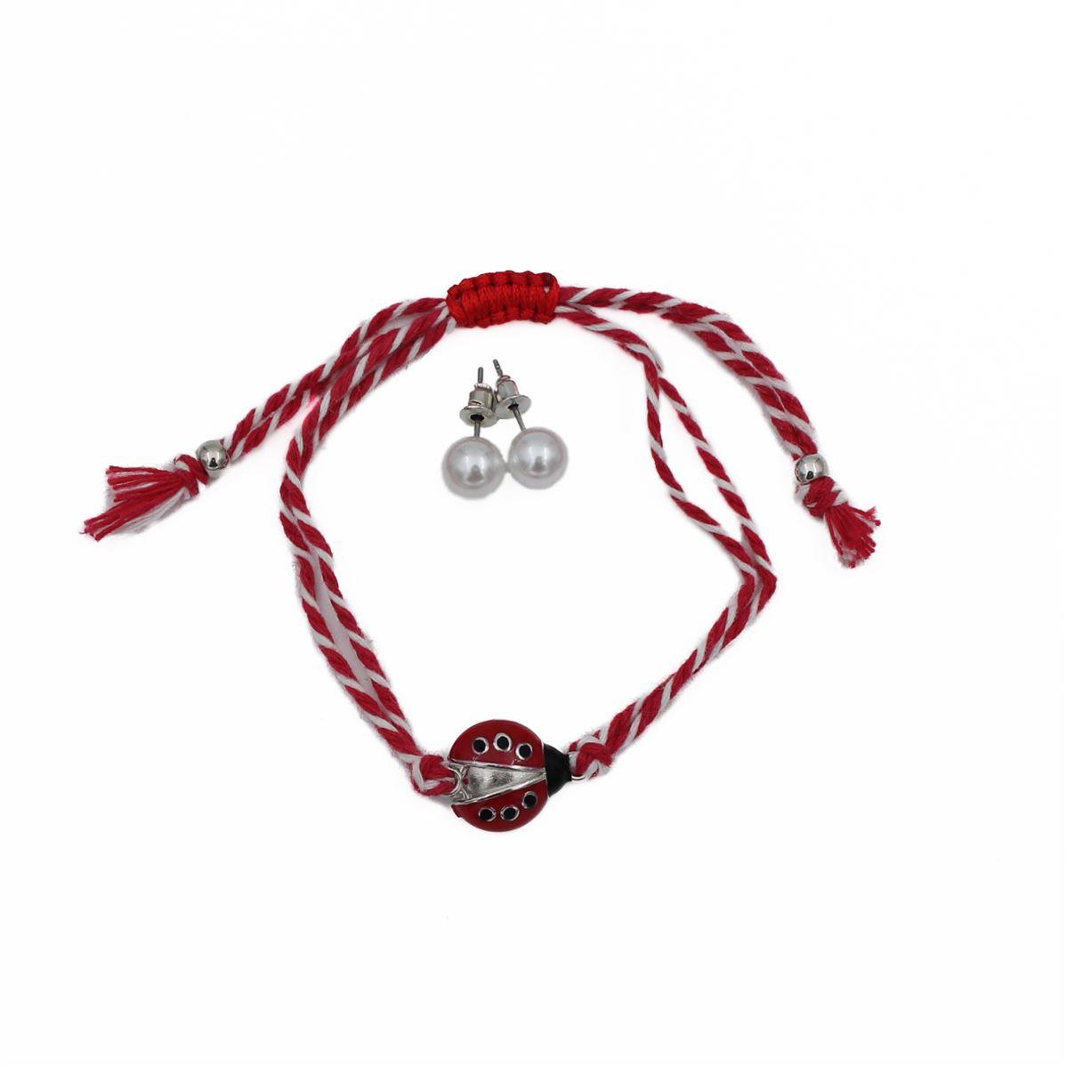 Βραχιόλι "Μάρτης πασχαλίτσα σετ με ατσάλινα σκουλαρίκια πέρλα" one size 70335