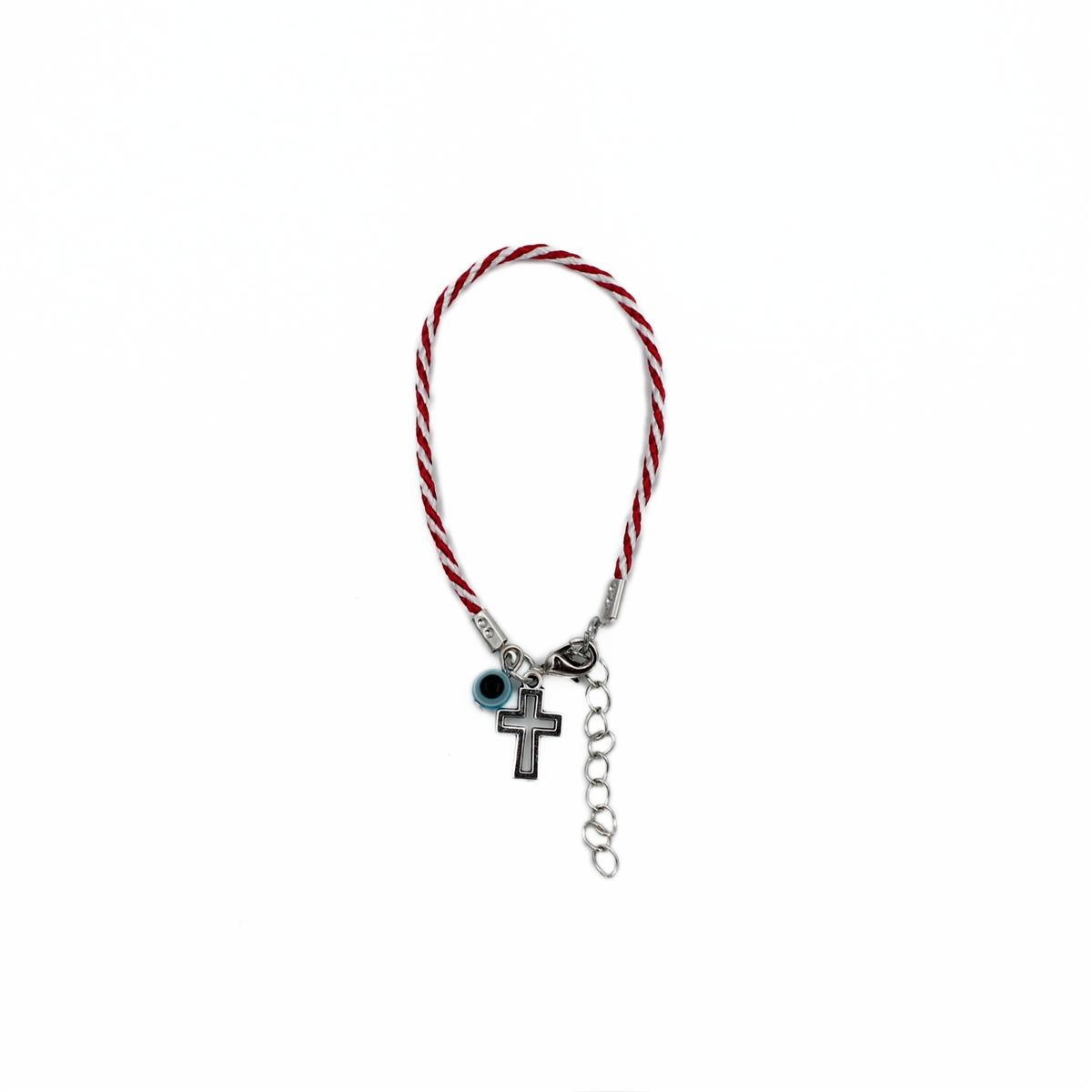 Ατσάλινο βραχιόλι χειροποίητο "Μάρτης με σταυρό με μάτι" μήκος 16εκ+προέκταση 70341