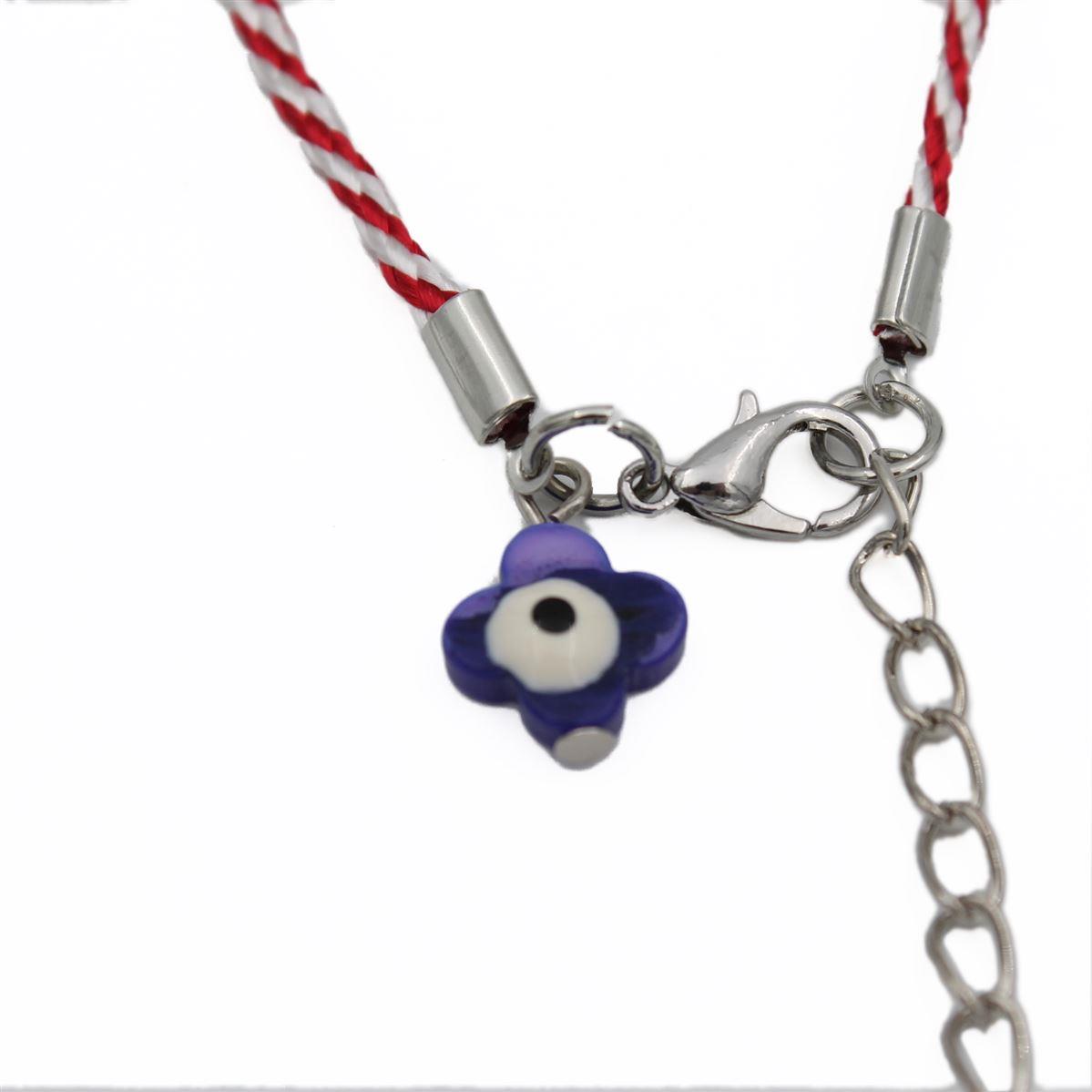 Ατσάλινο βραχιόλι χειροποίητο "Μάρτης με τετράφυλλο τριφύλλι με μάτι με φίλντισι" μήκος 16εκ+προέκταση 70343