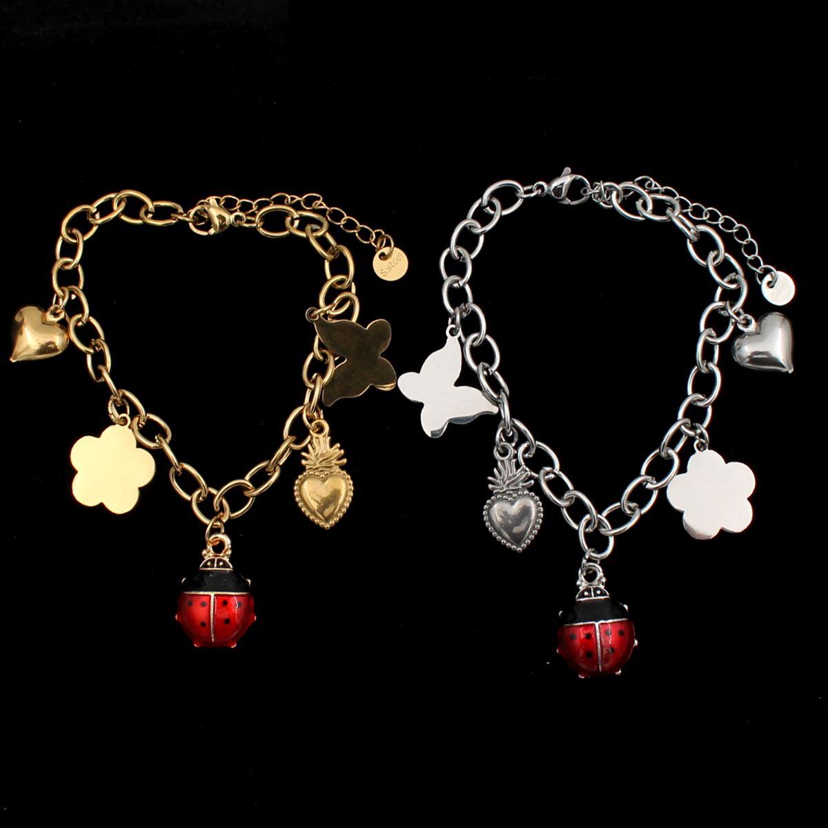 Ατσάλινο βραχιόλι "πασχαλίτσα με charms" μήκος 17εκ.+προέκταση 70545