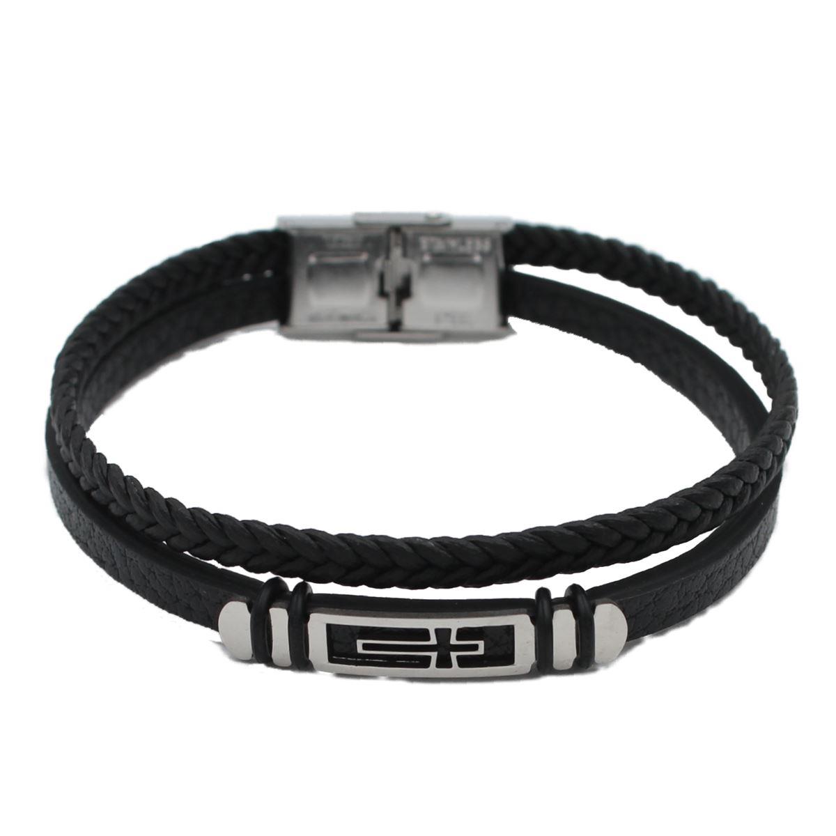 Ατσάλινο βραχιόλι δερμάτινο "με ατσάλινο στοιχείο σταυρό" πάχος 1,2εκ. μήκος 2εκ. 70643