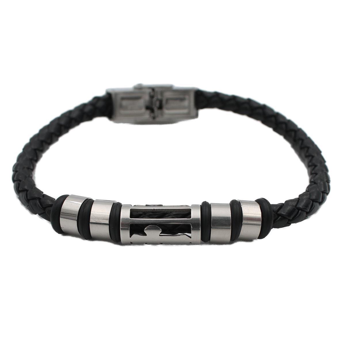 Ατσάλινο βραχιόλι δερμάτινο "με ατσάλινο στοιχείο σταυρό" πάχος 0,8εκ. μήκος 2εκ. 70644