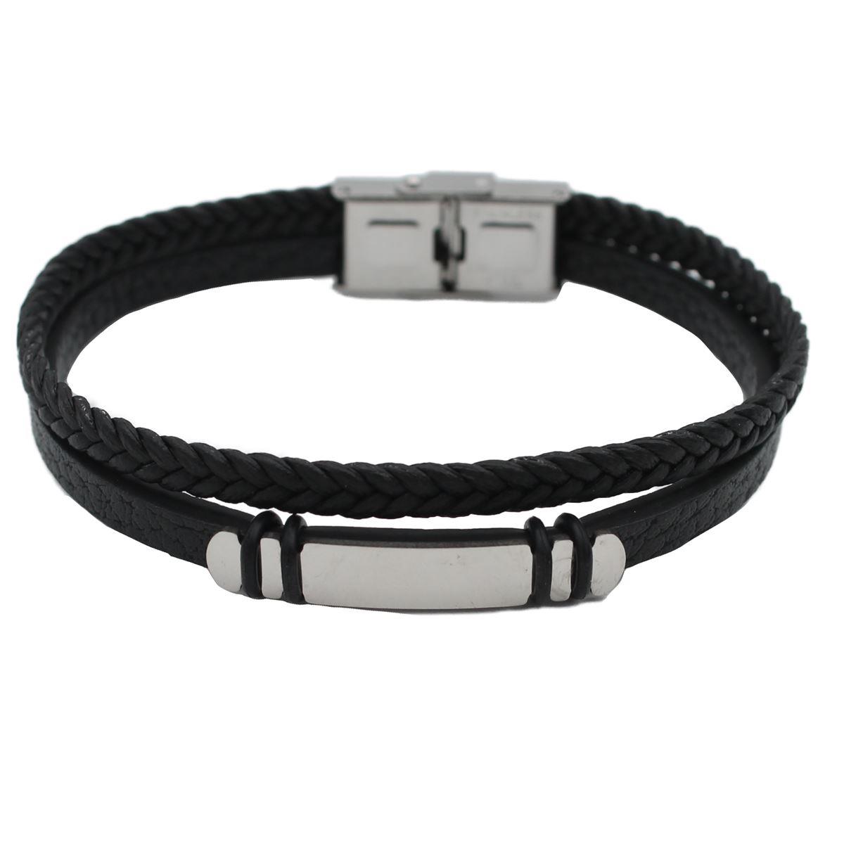 Ατσάλινο βραχιόλι δερμάτινο "με ατσάλινο στοιχείο ταυτότητα" πάχος 1εκ. μήκος 2εκ. 70645