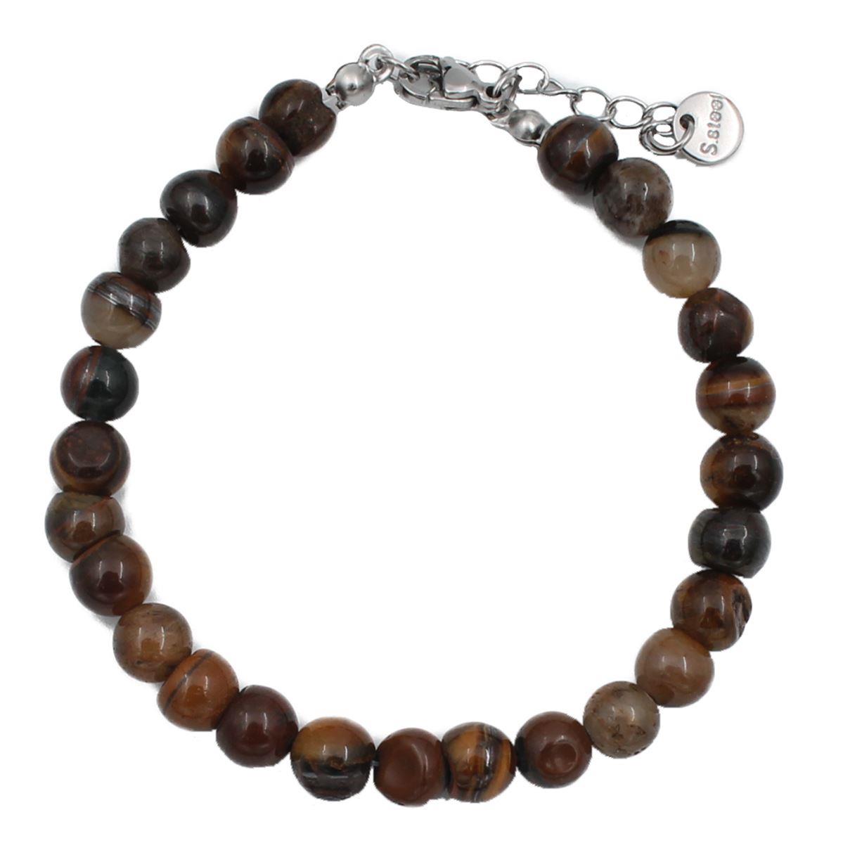 Ατσάλινο βραχιόλι "μπίλιες με ημιπολύτιμους λίθους" πάχος 0,7εκ. μήκος 17εκ.+προέκταση 70760