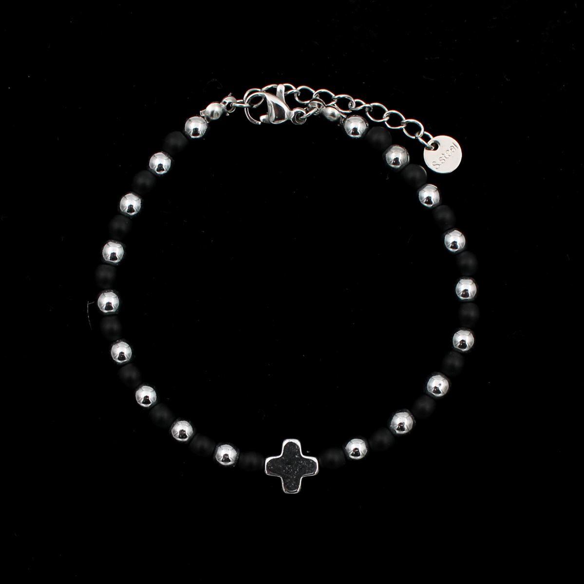 Ατσάλινο βραχιόλι "μπίλιες με ημιπολύτιμους λίθους" πάχος 0,4εκ. μήκος 17εκ.+προέκταση 70758