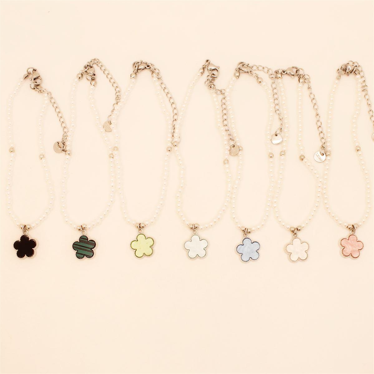 Βραχιόλι ατσάλι πέρλα με λουλούδι. Μήκος 20+εκ. 54643