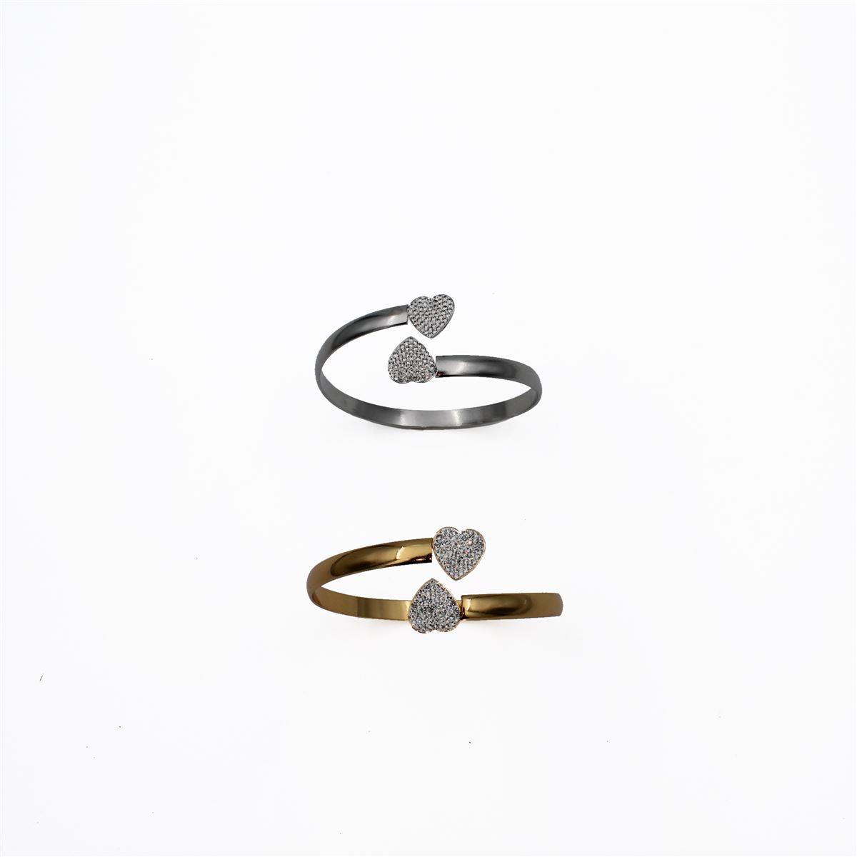 Ατσάλινο βραχιόλι "βέργα ανοιχτή με καρδιές και λευκές πέτρες" διάμετρος 6εκ. 70115