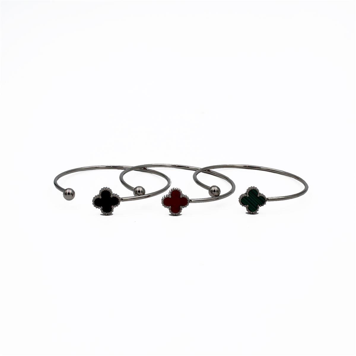 Ατσάλινο βραχιόλι "βέργα ανοιχτή με τετράφυλλο τριφύλλι" πάχος 0,2εκ. διάμετρος 6+εκ. 70117