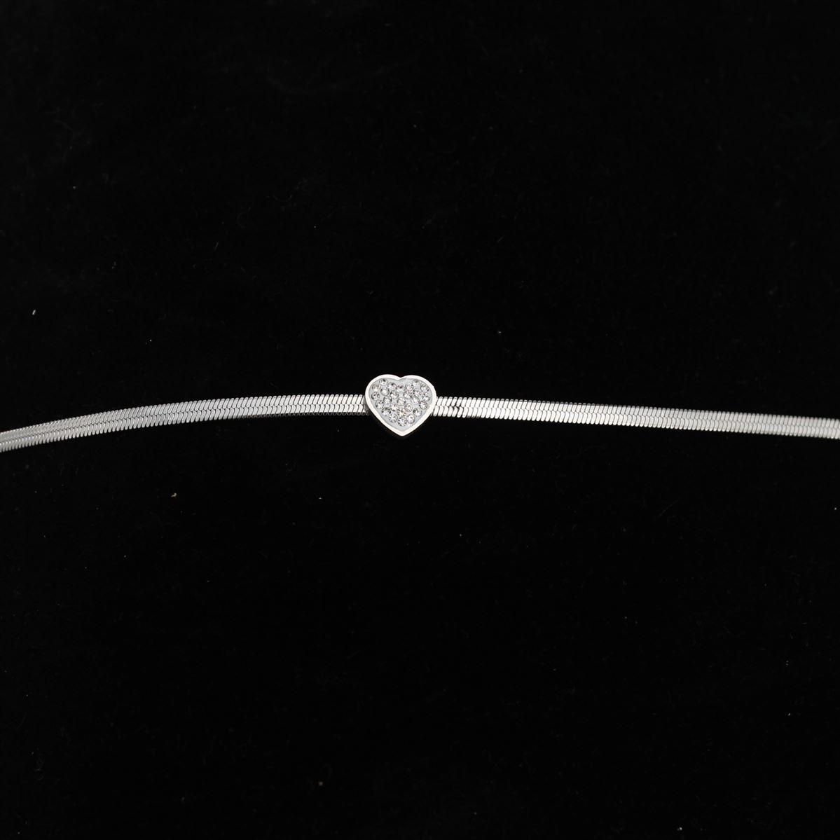 Ατσάλινο βραχιόλι "αλυσίδα τύπου φίδι με καρδιά με λευκές πέτρες" μήκος 17εκ.+προέκταση 70160