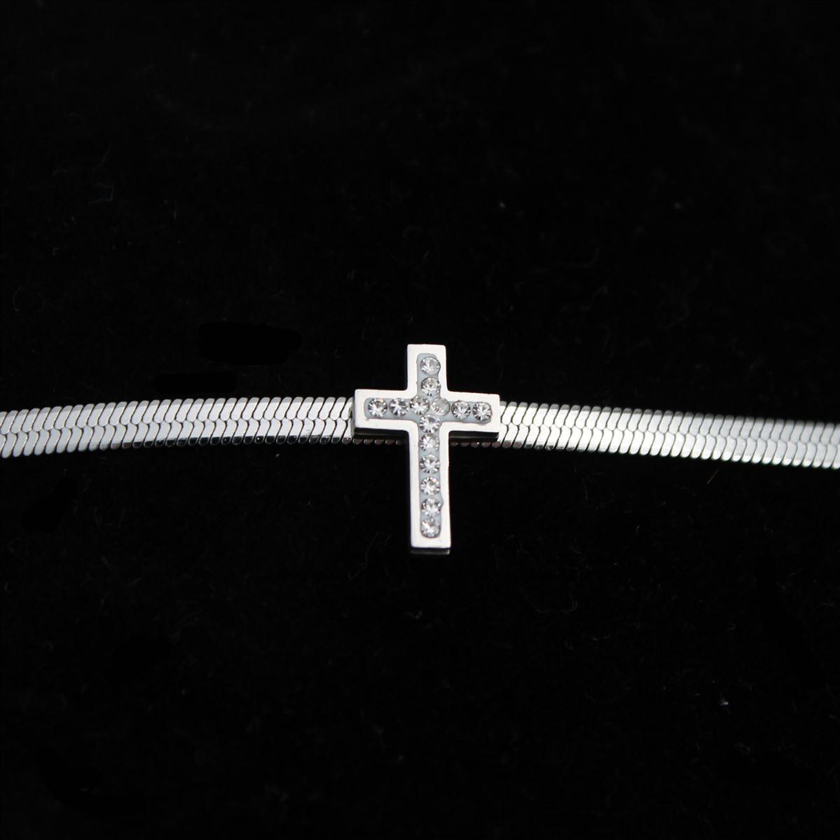 Ατσάλινο βραχιόλι "αλυσίδα τύπου φίδι με σταυρό με λευκές πέτρες" μήκος 17εκ.+προέκταση 70161